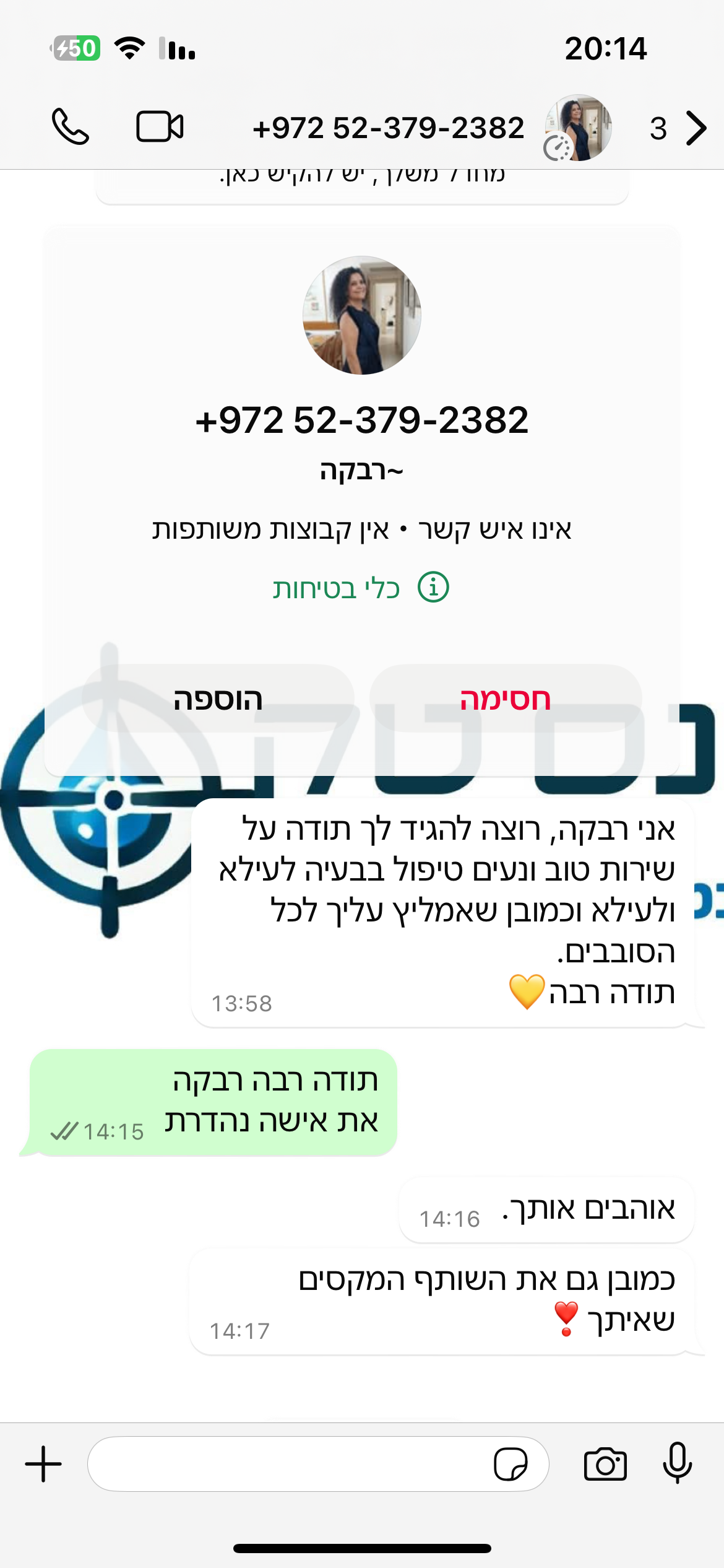 ״אני רבקה, רוצה להגיד לך תודה על שירות טוב ונעים טיפול בבעיה לעילא ולעילא וכמובן שאמליץ עליך לכל הסובבים. תודה רבה״