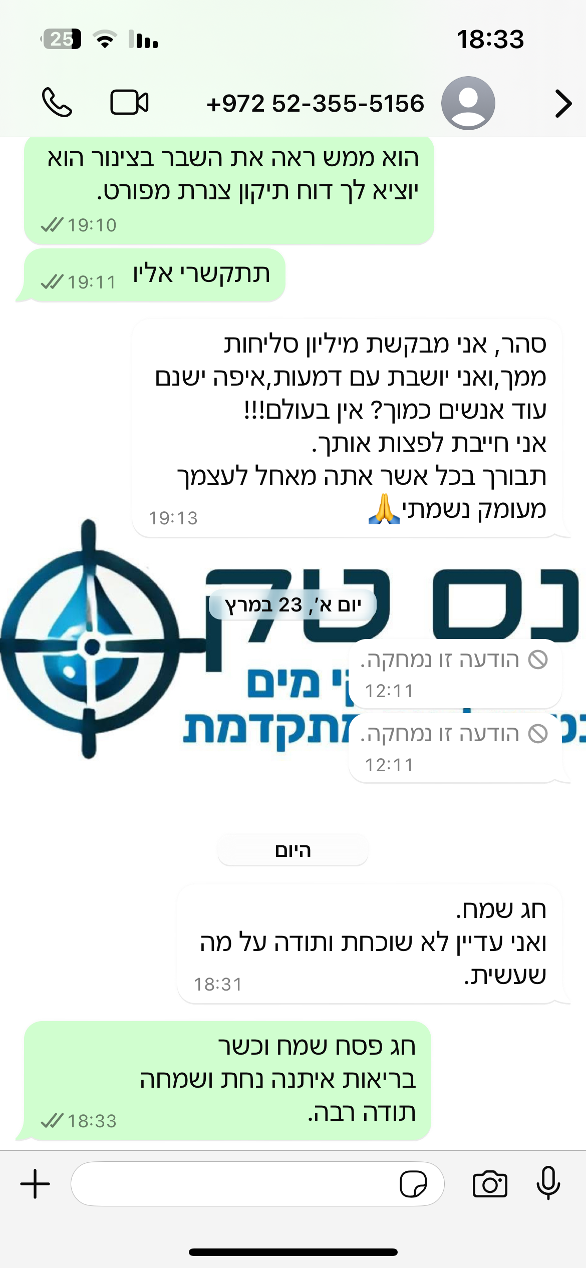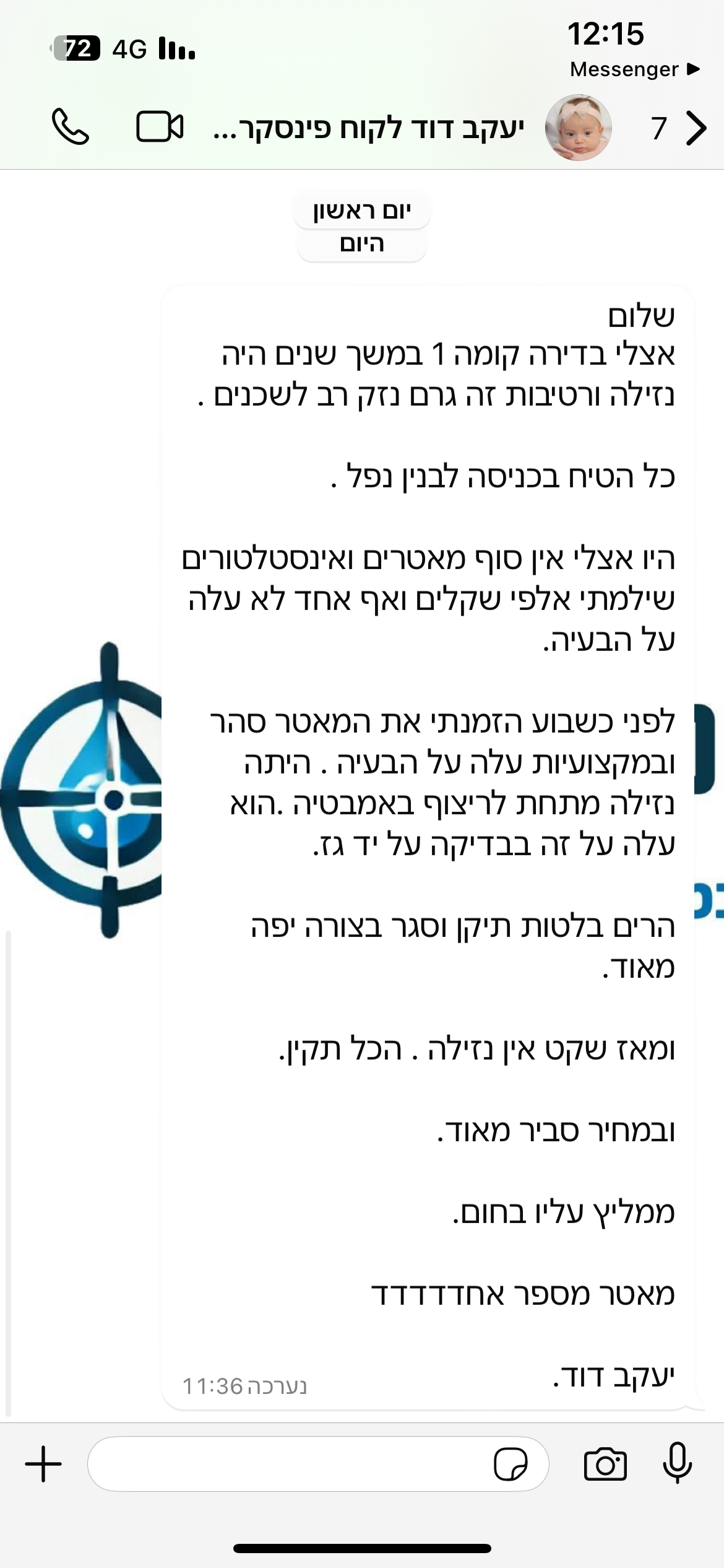 ״רציתי להגיד לך תודה רבה על כך שסוף סוף לאחר עשרה חודשים בהם נכנסים ויוצאים בעלי מקצוע מביתי בניסיון לאתר את מקור הנזילה ללא הצלחה הגעת ובעבודה יסודית ומקצועית איתרת את מוקד הבעיה ופתרת לי את הנזילה לשכנים. תודה רבה אמליץ עליץ.״